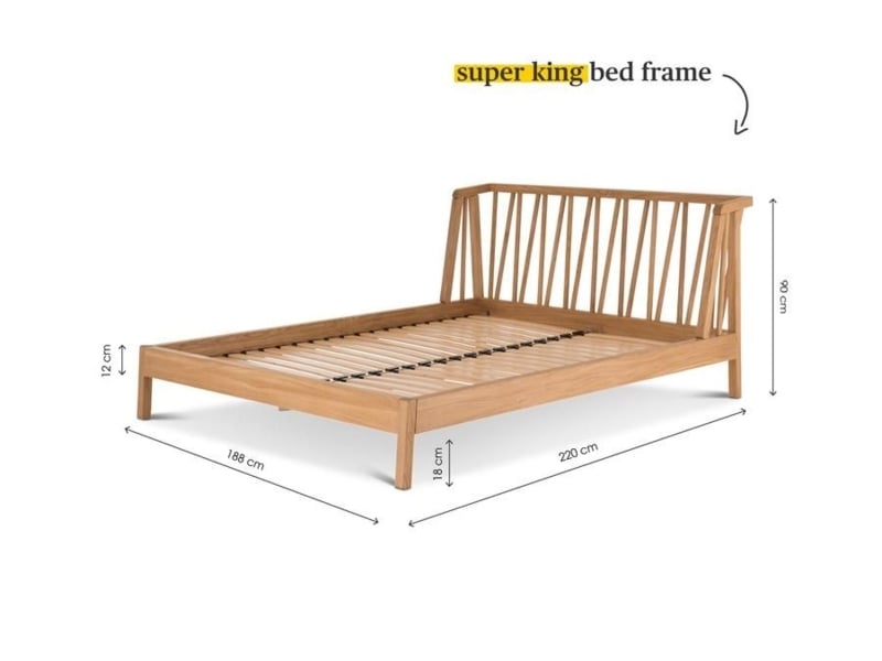 Complete your neutral-modern bedroom with this mid-century inspired wooden bed frame. Crafted from solid wood and finished in an ash veneer this bed frame is the perfect addition to any bedroom. The adjustable legs allow you to alter the bed height so you can store things underneath. Find the matching items also online by searching Saskia.